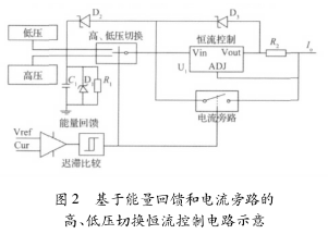 高、低壓切換恒流控制電路是勵磁控制系統中的關鍵部分,由高、低壓電源、能量回饋電路、高低壓切換電路、恒流控制電路、電流旁路電路和遲滯比較電路組成,其電路原理如圖2所示。