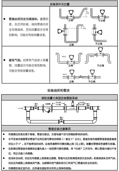 12、直管段要求:氣體:上游直管段應≥10DN,下游直管段應≥5DN;液體:上游直管段應≥20DN,下游直管段應≥5DN;插入式:上游直管段應≥20DS,下游直管段應≥7DS(DS為管道實測內徑)