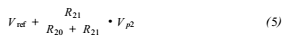 整個(gè)電路的工作過程為:當(dāng)P2.9為高電平時(shí),Q1、Q2、Q3、Q4導(dǎo)通,此時(shí)Q5的基極電流為零,Q5截止,此時(shí)P2的端口2輸出+24V的電壓。此時(shí)P2.8為低電平,Q6、Q7、Q8、Q9,此時(shí)有電流流經(jīng)Q10基極,并使其基極和發(fā)射級導(dǎo)通,Q10的功能相當(dāng)于一個(gè)二極管的作用,此時(shí)P1端口沒有電壓輸出。那么,A/D轉(zhuǎn)換器的參考輸入端Vref(+)為: