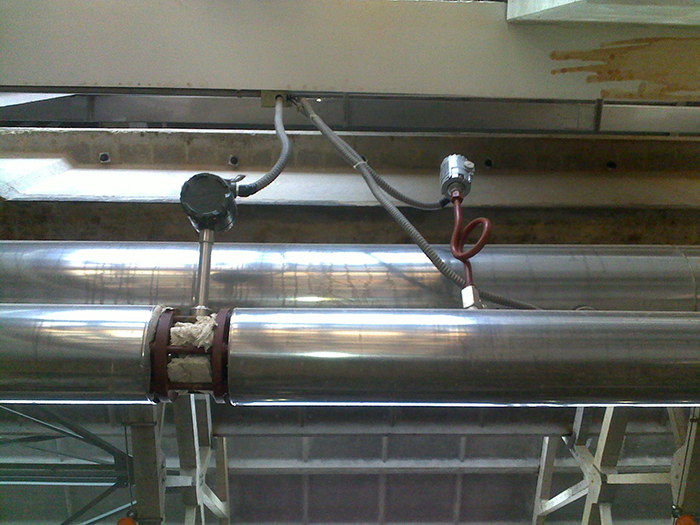 4、管道采取減振動措施。傳感器盡量避免安裝在振動較強的管道上,特別是橫向振動。若不得已要安裝時,必須采取減振措施,在傳感器的上下游2D處分別設(shè)置管道緊固裝置,并加防振墊。