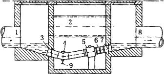 由于大口徑管道在多數(shù)場合下是埋在地下的,因此大口徑傳感器在安裝前應做好水泥地坑。圖6-19所示是在給排水系統(tǒng)中常見的安裝形式。水泥地坑應有足夠的活動空間,側(cè)壁埋有敷設(shè)電纜的鋼管,上有蓋板防止雨淋,下有泄水管以免坑內(nèi)積水而使傳感器侵水。為了拆裝方便,傳感器應放在墊腳上,且在下游側(cè)裝有活絡(luò)的伸縮管。圖6-20是測量鹽水流量計在地下水泥管污水排放系統(tǒng)中的安裝實例。
