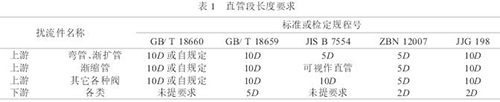(1)對安裝管路的要求.實際工程上,電極平面處的流速分布已同初校時有較大的差別,傳感器上游管道連接件的配置是引起特殊的流速分布的因素之一,使用中就有可能出現量值偏移.對傳感器前后直管段的要求是保證流速以中心軸為對稱分布,獲得儀表測量精確度的必要條件之一,國標GB/T18659-2002等列舉了對漸縮管、上游閥、圓弧彎頭*小直管段長度的要求(見表1).