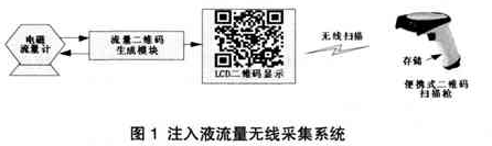 二維碼生成模塊定時向測液體流量計發送采集指令,后者收到指令后發送流量數據。