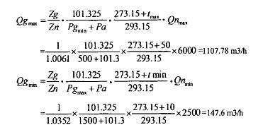 已知介質的*低壓力、*高溫度和所需的*大標準狀況下的流量,計算*大工況下的流量: