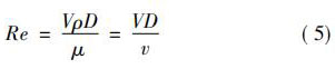 式中: V 與 D 與上文一致; ρ為流體密度,kg /m3 ; μ為流體的動力黏度,Pa·s; v 為流體運動黏度,m2 / s。