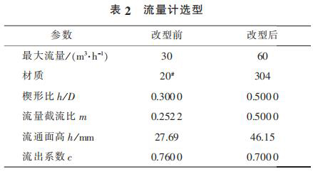 2) 為了解決泵出口流量計頻繁泄漏以及流量較低不能滿足工藝需求的問題,更換新型流量計,其相關參數見表 2。 更換后的流量計運行 4 000 h后未出現泄漏現象。