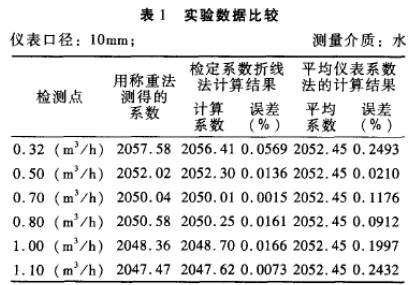 被檢儀表:公稱通徑分別為10mm和15mm的渦輪流量傳感器各一臺(tái);檢定裝置:靜態(tài)稱重法標(biāo)準(zhǔn)水流量檢定裝置,系統(tǒng)精度+0.2%。分別采用常規(guī)的平均儀表系數(shù)法和檢定系數(shù)折線法進(jìn)行標(biāo).定,并與作為標(biāo)準(zhǔn)的靜態(tài)稱重法的檢定結(jié)果進(jìn)行比對(duì),結(jié)果見表1.表2。