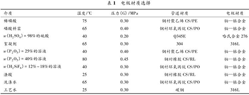 國內(nèi)某 300 kt/a 磷酸裝置中,含有不同溫度、不同壓力、不同濃度的多種酸液,包括:稀磷酸、濃硫酸、磷酸料漿、絮凝劑、P 2 O 5 溶液、H 2 SiF 6 溶液、渣酸、洗滌水、酸性循環(huán)水、工藝水等。如此復雜的工藝介質(zhì)對流量計的選型要求很高,酸液的配比、濃度、溫度、雜質(zhì)、溶解氣體以及流速等都會影響接液材質(zhì)的耐腐蝕性。