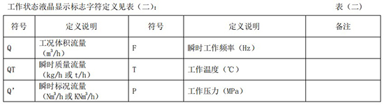 工作狀態(tài)液晶顯示標(biāo)志字符定義見表(二):