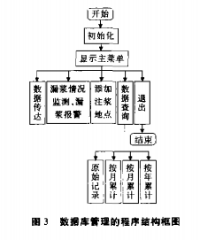 系統的軟件部分包括單片機測試程序、PC機通訊程序、PC機數據庫管理程序。受篇幅限制,這里僅給出數據庫管理的程序結構框圖,其結構框圖如圖3所示。該部分程序用FoxPro2.5 for Windows編寫,按系統共要求設置三層菜單界面。