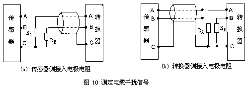 按圖7-10所示及上文"電極接觸電阻的測量"所測得兩電極的大體電阻值RA、RR,分別按圖a、b接入電路所測得零點之差應在滿度值1%或其基本誤差范圍以內。